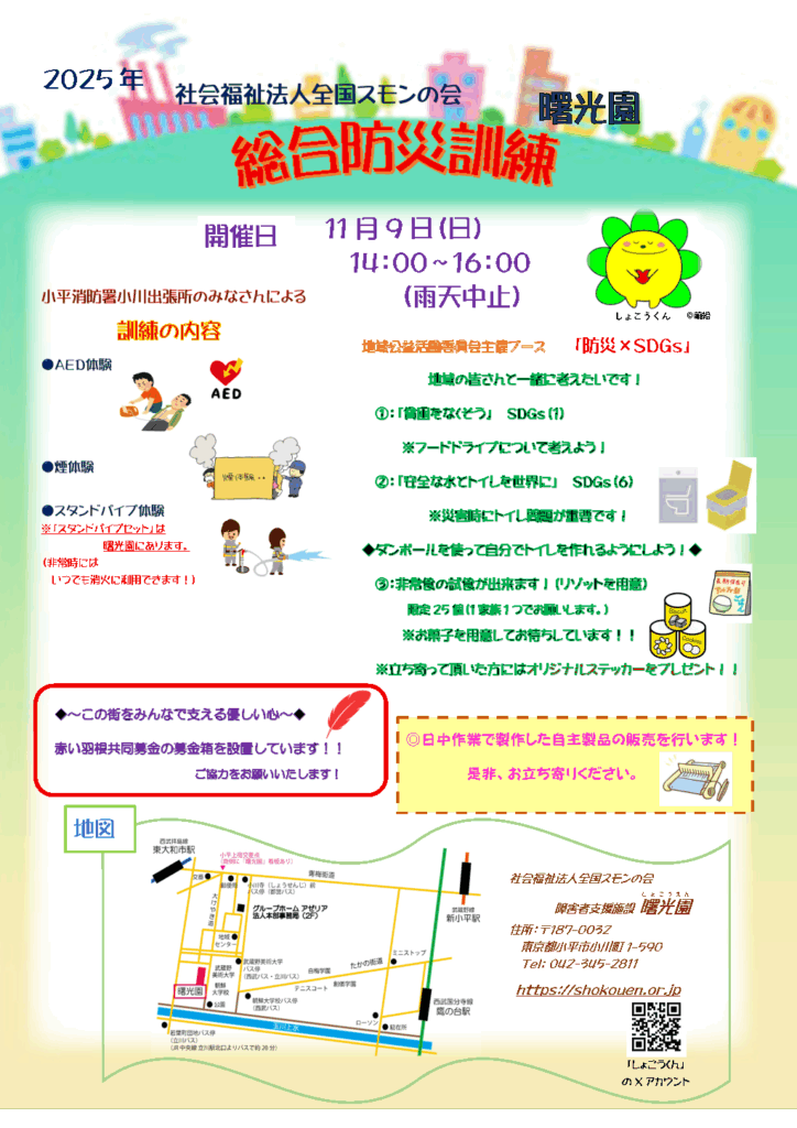 本日(11/9)総合防災訓練のイベントは、雨天のため中止となりました。