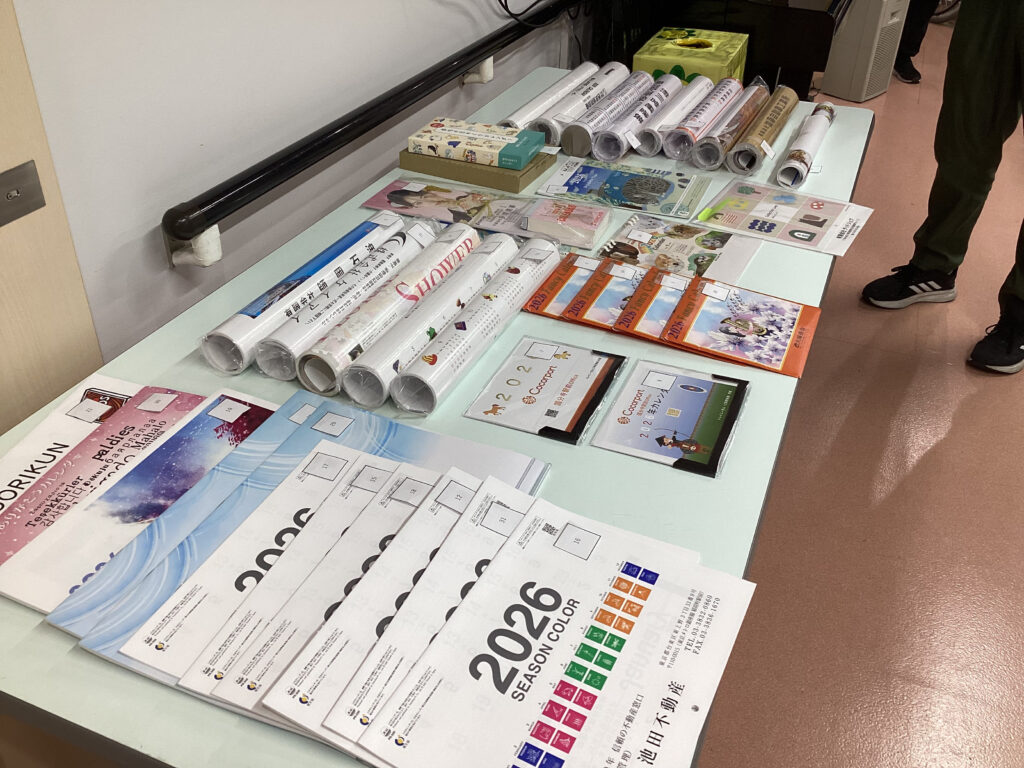 カレンダー抽選会です。景品のカレンダーは、いつもご支援してくださっている皆様からのご提供です。今年もよろしくお願い申し上げます。