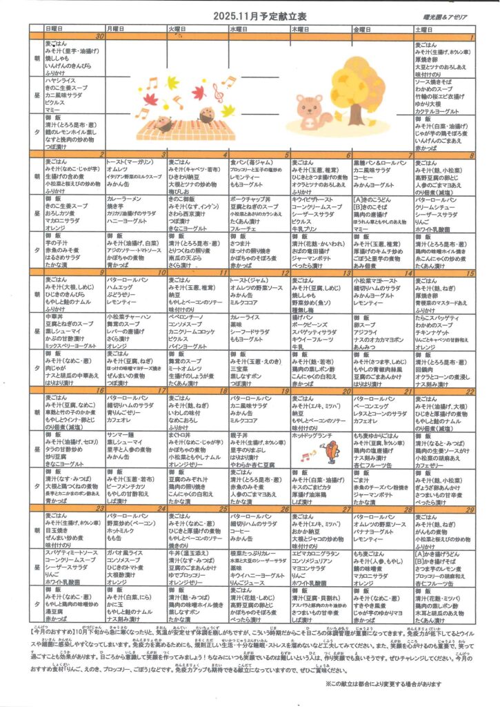 2025年11月 予定献立表