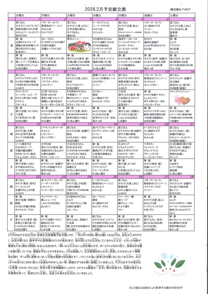 2026年2月 予定献立表