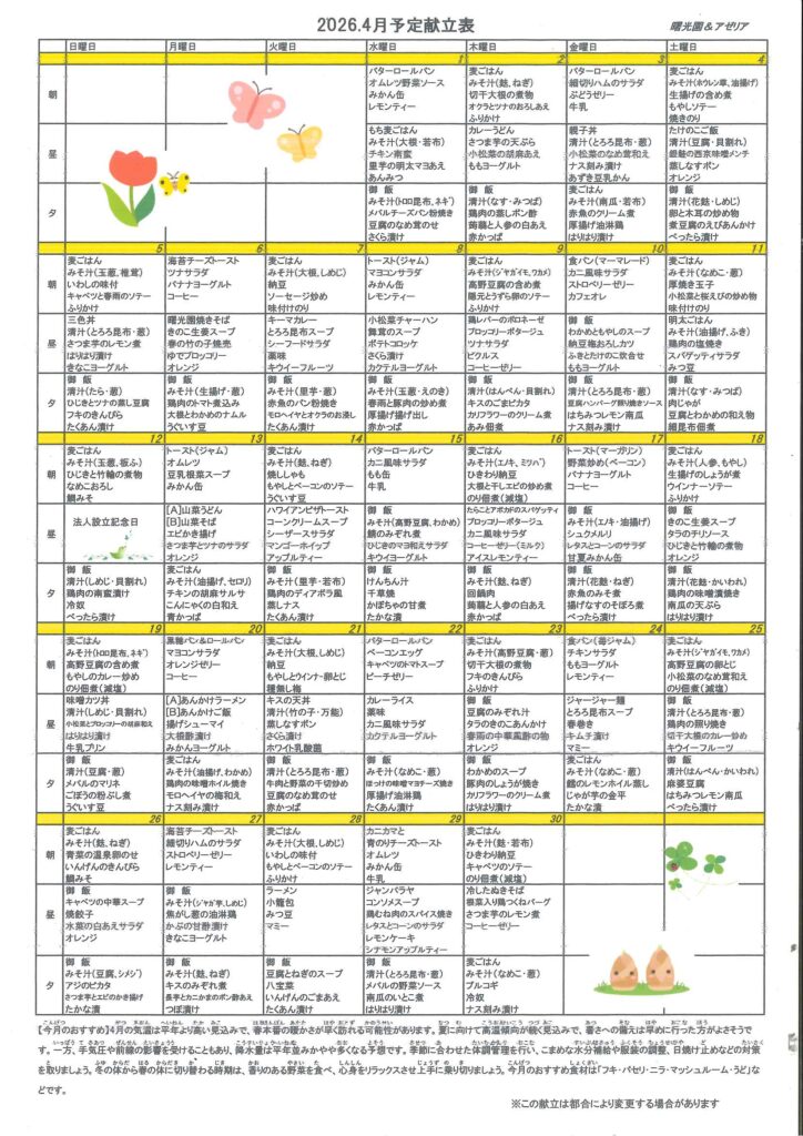 2026年4月 予定献立表