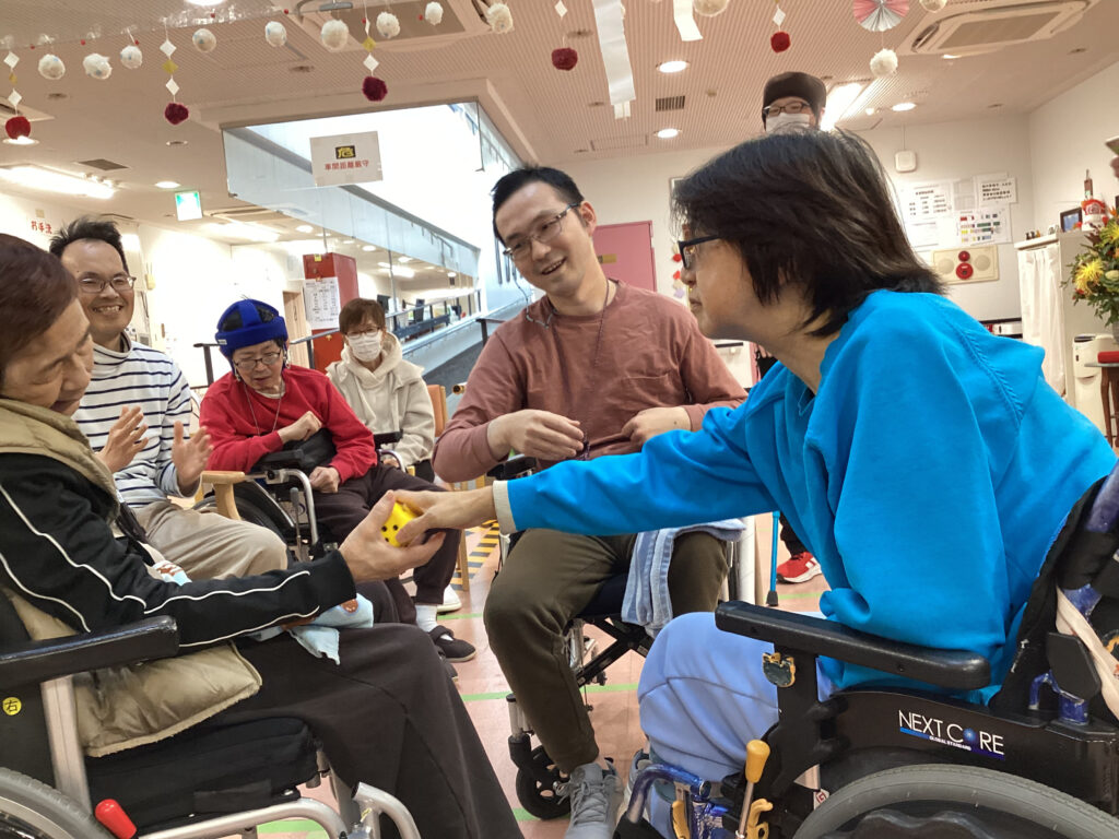 ~1月2日(金)~ 正月行事2日目、午後は「爆弾ゲーム」を楽しみました。流れる音楽に合わせて黄色いサイコロをお隣の人に回していきます♪ …音楽が急に止まると…。「どっか~~~ん!!」、そのとき黄色いサイコロを持っていた人は残念ながら離脱です。す... -